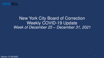 New York City Board of Correction Weekly COVID-19 Updates including population changes, Correctional Health Services (CHS) and Department of Correction (DOC) updates to the Board of Correction (BOC), and housing information.