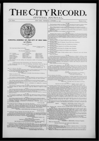 The City Record newspaper publishes notices which includes but is not limited to: public hearings and meetings, public auctions and sales, solicitations and awards and official rules proposed and adopted by city agencies. This is the City Record Newspaper for October 24, 1901.