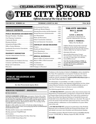 The City Record newspaper publishes notices which includes but is not limited to public hearings and meetings, public auctions and sales, solicitations and awards and official rules proposed and adopted by city agencies.