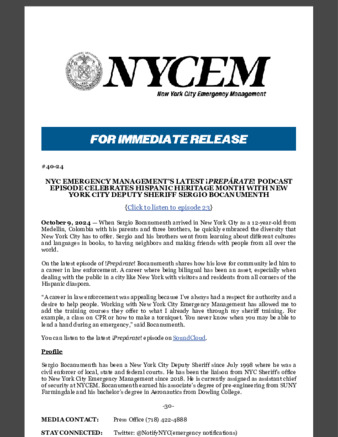 Press releases are designed to inform the public of an upcoming/ongoing emergency or special event. Some emergencies include coastal storms, winter weather and extreme heat. Releases also highlight special events including Ready New York presentations and other community preparedness initiatives.