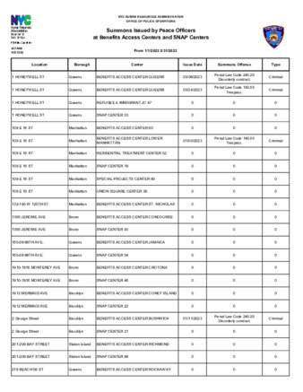 - Quarterly Report on arrests, summonses, removals, escorts and use of force incidents in job centers and Supplemental Nutrition Assistance Program (SNAP) centers