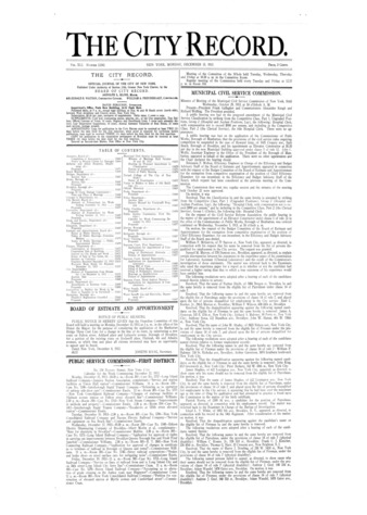The City Record newspaper publishes notices which includes but is not limited to: public hearings and meetings, public auctions and sales, solicitations and awards and official rules proposed and adopted by city agencies. This is the City Record Newspaper for December 15, 1913.