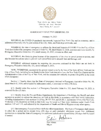 Emergency Executive Order No. 339, is being submitted to extend Emergency Executive Order No. 335, dated February 14, 2023, for five (5) days, if this relates to Covid-19 pandemic.