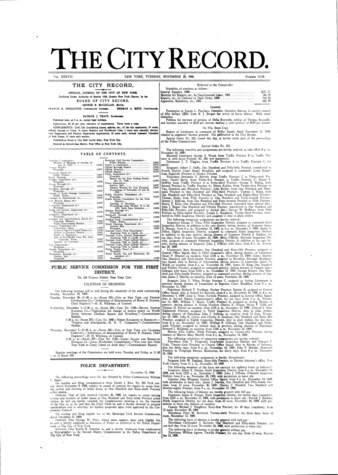 The City Record newspaper publishes notices which includes but is not limited to: public hearings and meetings, public auctions and sales, solicitations and awards and official rules proposed and adopted by city agencies. This is the City Record Newspaper for November 30, 1909.