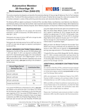 This brochure describes the obligations and benefits of the Automotive Member 25-Year and Age 50 Retirement Plan for Tier 6 members (6AU-25).