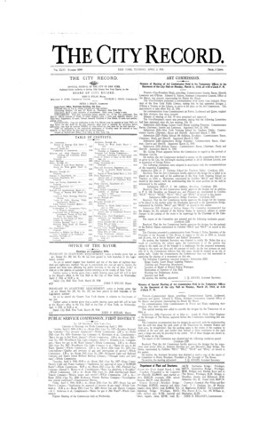 The City Record newspaper publishes notices which includes but is not limited to: public hearings and meetings, public auctions and sales, solicitations and awards and official rules proposed and adopted by city agencies. This is the City Record Newspaper for April 02, 1918.