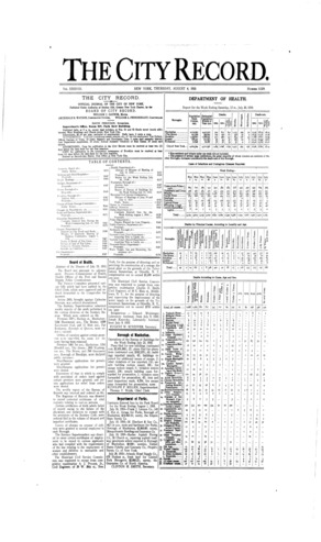 The City Record newspaper publishes notices which includes but is not limited to: public hearings and meetings, public auctions and sales, solicitations and awards and official rules proposed and adopted by city agencies. This is the City Record Newspaper for August 04, 1910.