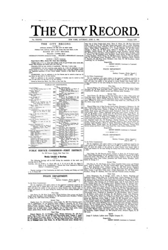 The City Record newspaper publishes notices which includes but is not limited to: public hearings and meetings, public auctions and sales, solicitations and awards and official rules proposed and adopted by city agencies. This is the City Record Newspaper for June 11, 1910.