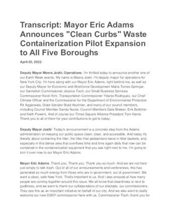 Transcript: Mayor Eric Adams Announces "Clean Curbs" Waste Containerization Pilot Expansion to All Five Boroughs