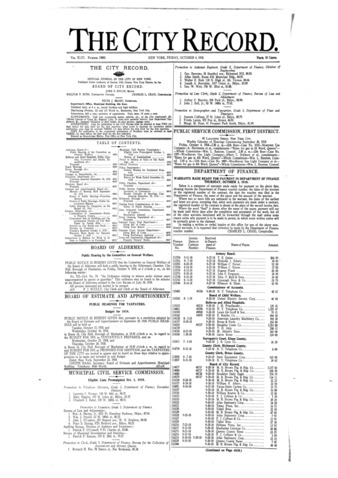 The City Record newspaper publishes notices which includes but is not limited to: public hearings and meetings, public auctions and sales, solicitations and awards and official rules proposed and adopted by city agencies. This is the City Record Newspaper for October 04, 1918.