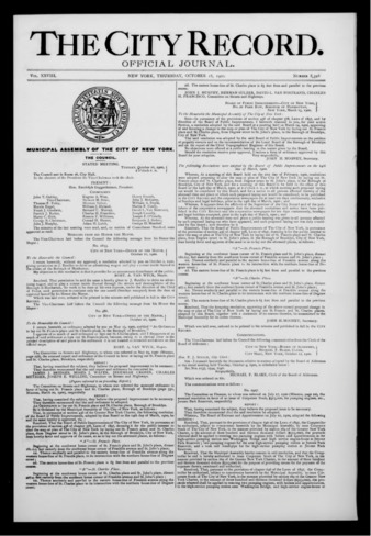 The City Record newspaper publishes notices which includes but is not limited to: public hearings and meetings, public auctions and sales, solicitations and awards and official rules proposed and adopted by city agencies. This is the City Record Newspaper for October 18, 1900.