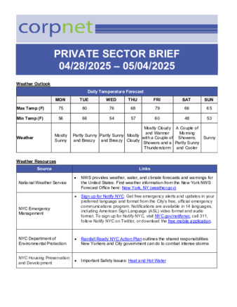 - NYCEM CorpNet Public-Private Sector Weekly Incident Brief 04-28-25