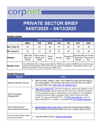 - NYCEM CorpNet Public-Private Sector Weekly Incident Brief 04-07-25