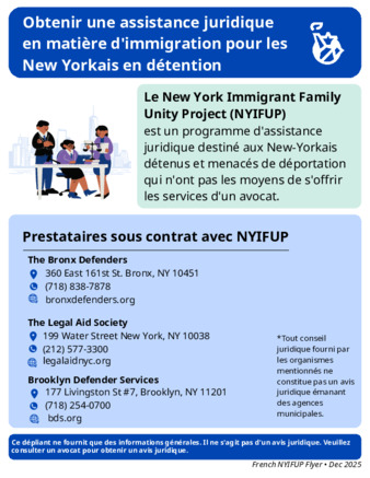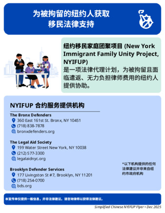 The New York Immigrant Family Unity Project (NYIFUP) is a legal representation program for New Yorkers detained and facing deportation who cannot afford an attorney.