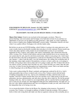 TRANSCRIPT: MAYOR ADAMS HOLDS MEDIA AVAILABILITY