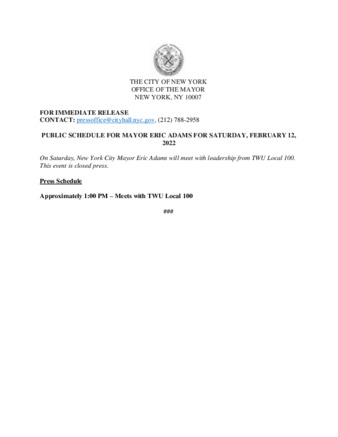 PUBLIC SCHEDULE FOR MAYOR ERIC ADAMS FOR SATURDAY, FEBRUARY 12, 2022