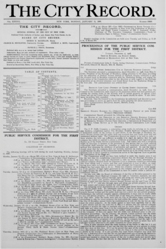 The City Record newspaper publishes notices which includes but is not limited to: public hearings and meetings, public auctions and sales, solicitations and awards and official rules proposed and adopted by city agencies. This is the City Record Newspaper for January 11, 1909.