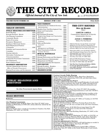 The City Record newspaper publishes notices which includes but is not limited to: public hearings and meetings, public auctions and sales, solicitations and awards and official rules proposed and adopted by city agencies.