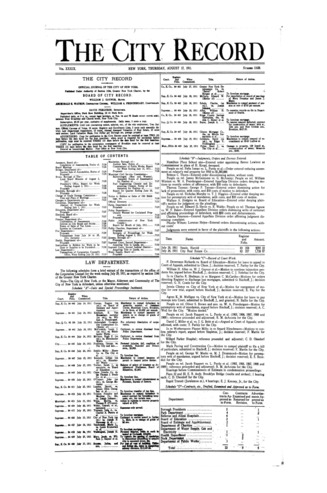 The City Record newspaper publishes notices which includes but is not limited to: public hearings and meetings, public auctions and sales, solicitations and awards and official rules proposed and adopted by city agencies. This is the City Record Newspaper for August 17, 1911.