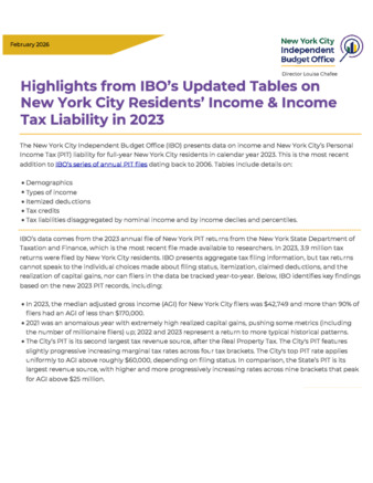 Highlights From IBO's Updated Tables on New York City Residents' Income & Income Tax Liability in 2023
