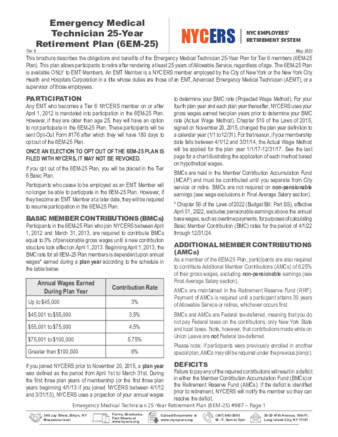 This brochure describes the obligations and benefits of the Emergency Medical Technician 25-Year Plan for Tier 6 members (6EM-25).