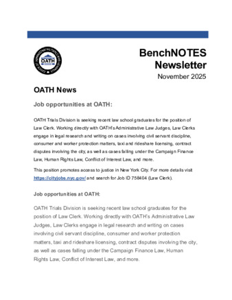 Monthly newsletter that contains summaries of noteworthy cases from the Trials Division of Office of Administrative Trials and Hearings (OATH).