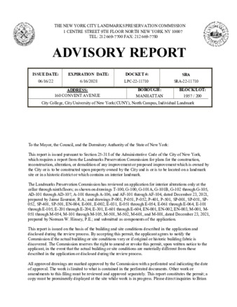 As required by New York City Administrative Code, Title 25, Section 318 report containing the June 2022 Staff Level Reports of the Landmarks Preservation Commission