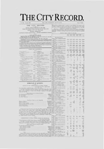 The City Record newspaper publishes notices which includes but is not limited to: public hearings and meetings, public auctions and sales, solicitations and awards and official rules proposed and adopted by city agencies. This is the City Record Newspaper for August 20, 1913.
