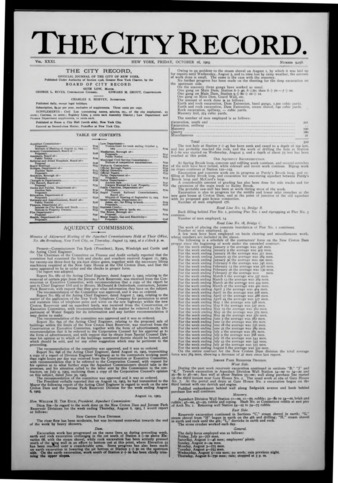 The City Record newspaper publishes notices which includes but is not limited to: public hearings and meetings, public auctions and sales, solicitations and awards and official rules proposed and adopted by city agencies. This is the City Record Newspaper for October 16, 1903.