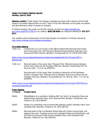 Design Commission Public Meeting Agenda, April 24, 2023 (REVISED)