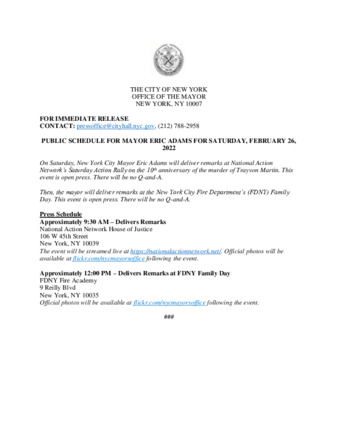 PUBLIC SCHEDULE FOR MAYOR ERIC ADAMS FOR SATURDAY, FEBRUARY 26, 2022