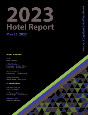 The Hotel Report consolidates research related to rent stabilized hotels into a single report. The report includes information on Certifications of No Harassment for SROs, illegal hotel violations, and additional data related to hotels.