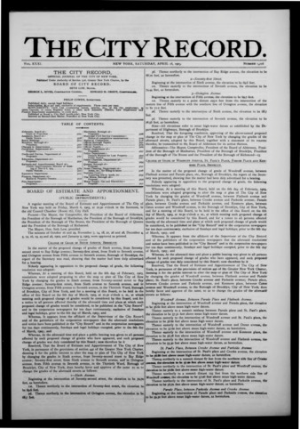 The City Record newspaper publishes notices which includes but is not limited to: public hearings and meetings, public auctions and sales, solicitations and awards and official rules proposed and adopted by city agencies. This is the City Record Newspaper for April 18, 1903.