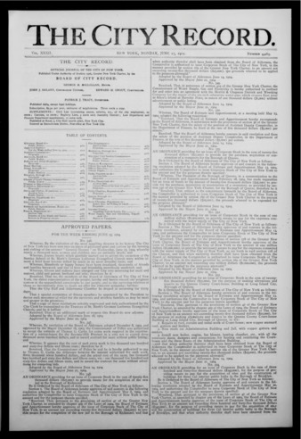 The City Record newspaper publishes notices which includes but is not limited to: public hearings and meetings, public auctions and sales, solicitations and awards and official rules proposed and adopted by city agencies. This is the City Record Newspaper for June 27, 1904.