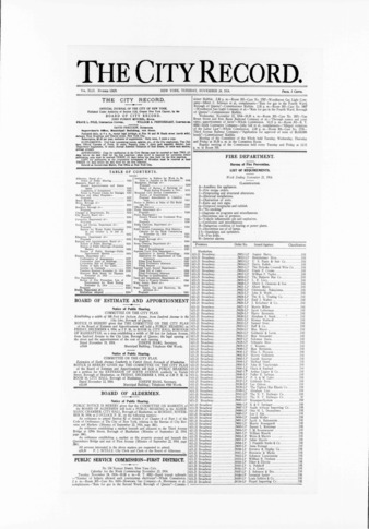 The City Record newspaper publishes notices which includes but is not limited to: public hearings and meetings, public auctions and sales, solicitations and awards and official rules proposed and adopted by city agencies. This is the City Record Newspaper for November 24, 1914 with supplement.