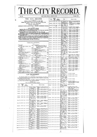The City Record newspaper publishes notices which includes but is not limited to: public hearings and meetings, public auctions and sales, solicitations and awards and official rules proposed and adopted by city agencies. This is the City Record Newspaper for August 09, 1912.