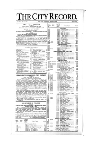 The City Record newspaper publishes notices which includes but is not limited to: public hearings and meetings, public auctions and sales, solicitations and awards and official rules proposed and adopted by city agencies. This is the City Record Newspaper for January 07, 1914.