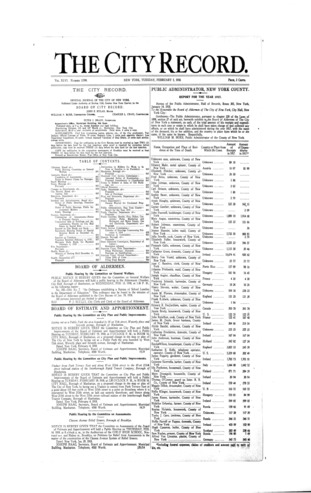 The City Record newspaper publishes notices which includes but is not limited to: public hearings and meetings, public auctions and sales, solicitations and awards and official rules proposed and adopted by city agencies. This is the City Record Newspaper for February 05, 1918.