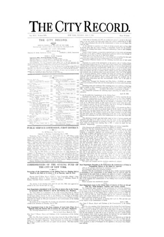 The City Record newspaper publishes notices which includes but is not limited to: public hearings and meetings, public auctions and sales, solicitations and awards and official rules proposed and adopted by city agencies. This is the City Record Newspaper for May 07, 1918.
