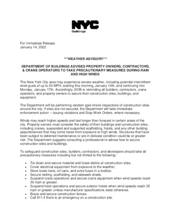 DEPARTMENT OF BUILDINGS ADVISES PROPERTY OWNERS, CONTRACTORS, & CRANE OPERATORS TO TAKE PRECAUTIONARY MEASURES DURING RAIN AND HIGH WINDS