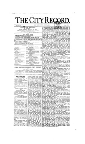 The City Record newspaper publishes notices which includes but is not limited to: public hearings and meetings, public auctions and sales, solicitations and awards and official rules proposed and adopted by city agencies. This is the City Record Newspaper for August 01, 1910.