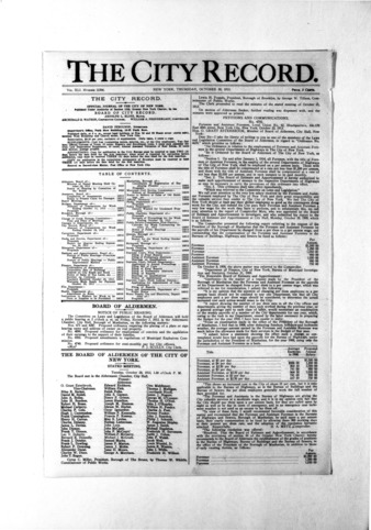 The City Record newspaper publishes notices which includes but is not limited to: public hearings and meetings, public auctions and sales, solicitations and awards and official rules proposed and adopted by city agencies. This is the City Record Newspaper for October 30, 1913.