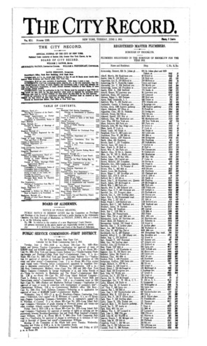 The City Record newspaper publishes notices which includes but is not limited to: public hearings and meetings, public auctions and sales, solicitations and awards and official rules proposed and adopted by city agencies. This is the City Record Newspaper for June 03, 1913.