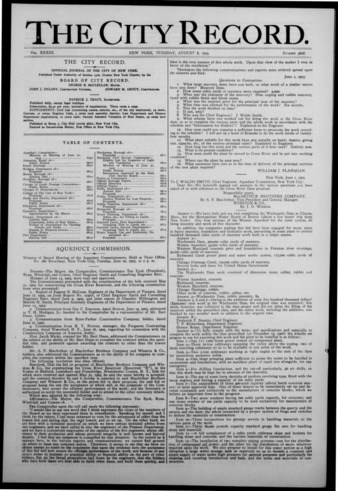 The City Record newspaper publishes notices which includes but is not limited to: public hearings and meetings, public auctions and sales, solicitations and awards and official rules proposed and adopted by city agencies. This is the City Record Newspaper for August 08, 1905.