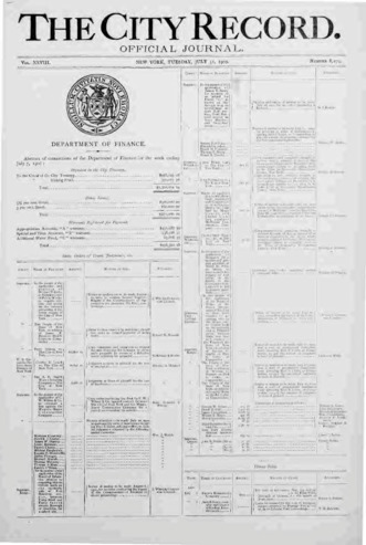The City Record newspaper publishes notices which includes but is not limited to: public hearings and meetings, public auctions and sales, solicitations and awards and official rules proposed and adopted by city agencies. This is the City Record Newspaper for July 31, 1900.