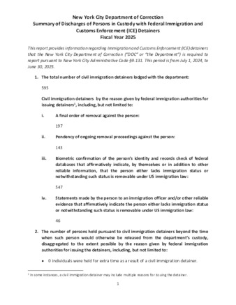 Annual Immigration and Customs Enforcement (ICE) Detainer Report - FY2025