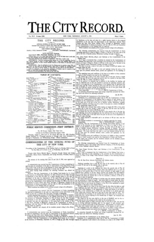 The City Record newspaper publishes notices which includes but is not limited to: public hearings and meetings, public auctions and sales, solicitations and awards and official rules proposed and adopted by city agencies. This is the City Record Newspaper for August 06, 1914.