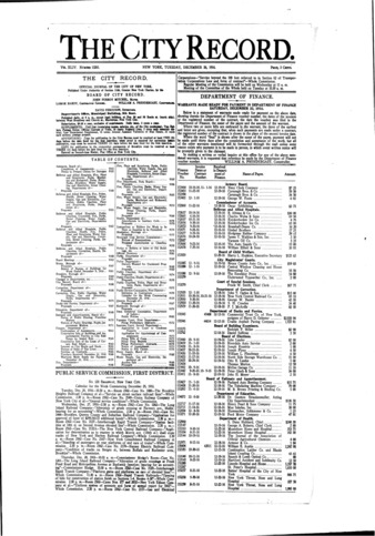 The City Record newspaper publishes notices which includes but is not limited to: public hearings and meetings, public auctions and sales, solicitations and awards and official rules proposed and adopted by city agencies. This is the City Record Newspaper for December 25, 1916.