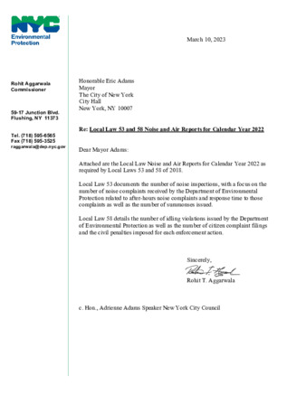 Local Law 53 of 2018 noise inspections and complaints report for calendar year 2022