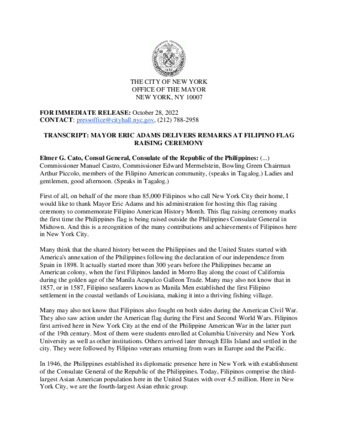 A transcript about New York City Mayor Eric Adams delivering remarks at Filipino flag raising ceremony.
